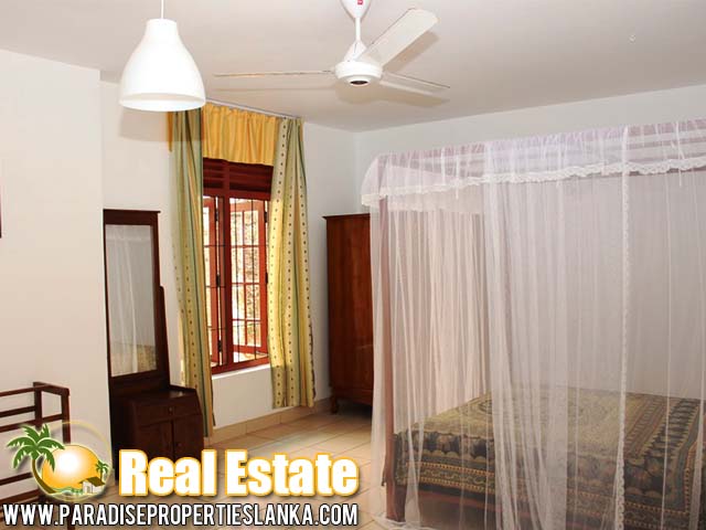 This three storied house is situated 1 km away from the lovely tourism area of Hikkaduwa. Sourrounded by a beautiful natuaral environment , the ground floor contains a kitchen and room. On the second floor it owned a very big air conditioned bed room with a washroom. In addition it contains , a big kitchen a living room and it has a big varendah , can be used for a restuarent. On the first floor it contains two bedroom with attached washroom. One bedroom is air condition. In addition it has a balcony. This house can be used as a holiday bungalow for private used. This property will be sold with all the furniture and all the belongings it owned. Land included 28 perches and sorrounded buy a wall and has a safety gate.